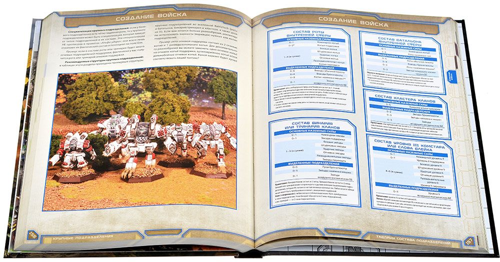 Один из ключевых блоков книги посвящён созданию войск. Игрокам предлагается несколько систем построения армий: можно формировать силы, опираясь на условные стоимости юнитов, на официальные структуры подразделений или на сюжетные ограничения кампаний. Это позволяет как собирать сбалансированные отряды для честных матчей, так и воссоздавать знаменитые соединения из лора вселенной BattleTech. Командир получает инструмент, с помощью которого легко подбирать нужный масштаб: от схватки нескольких мехов до операции с участием множества лансов и вспомогательных сил.