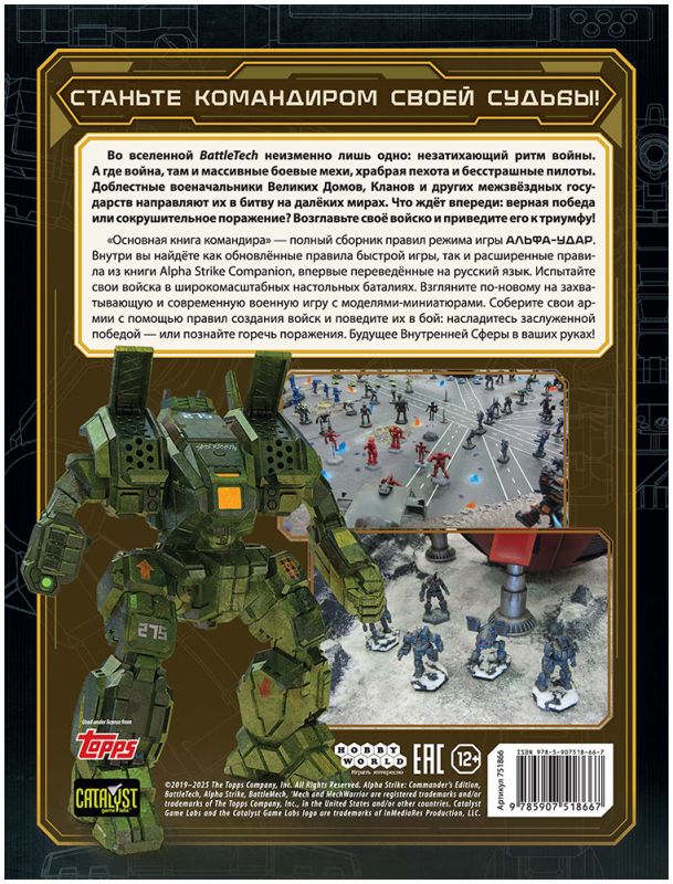 Важно понимать, что «Основная книга командира» не является самостоятельной игрой. Для реального боя на столе нужны миниатюры BattleTech (из коробок Alpha Strike или классических наборов) и, при желании, дополнительные аксессуары вроде набора жетонов для режима «Альфа-удар». Книга выступает как фундаментальная база правил, объединяющая разрозненные материалы альфа‑линейки и дающая командирам возможность управлять войсками в единой, актуальной системе.