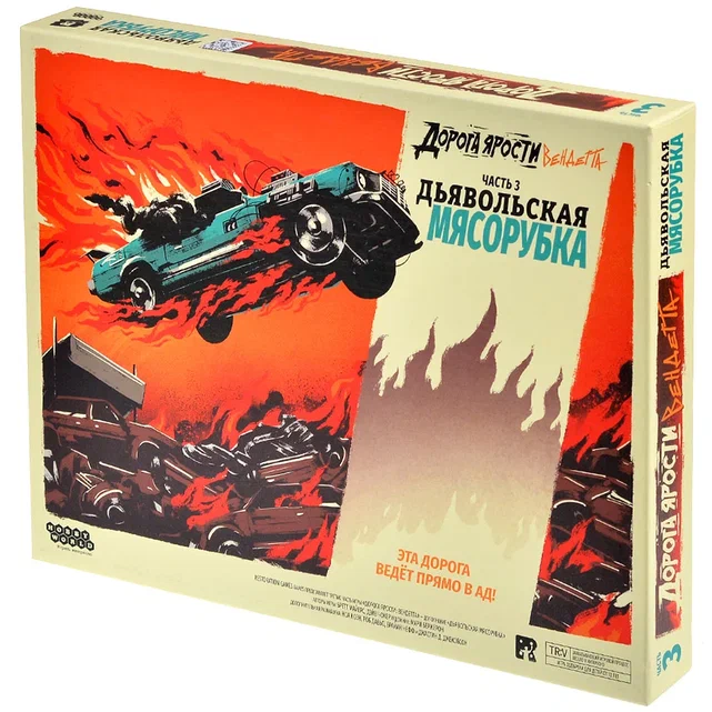 «Дорога ярости: Вендетта. Дьявольская мясорубка» — дополнение к постапокалиптической гонке «Дорога ярости: Вендетта», которое делает трассу ещё более жестокой, непредсказуемой и смертельно опасной. Если в базовой игре участникам уже приходилось лавировать между столкновениями, перестрелками и опасными манёврами, то с этим набором сама дорога превращается в главный источник угроз. Теперь дело действительно «пахнет жареным»: новые участки полотна, дьявольские опасности и огонь заставляют пересмотреть привычные тактики и готовят гонщикам настоящую мясорубку.