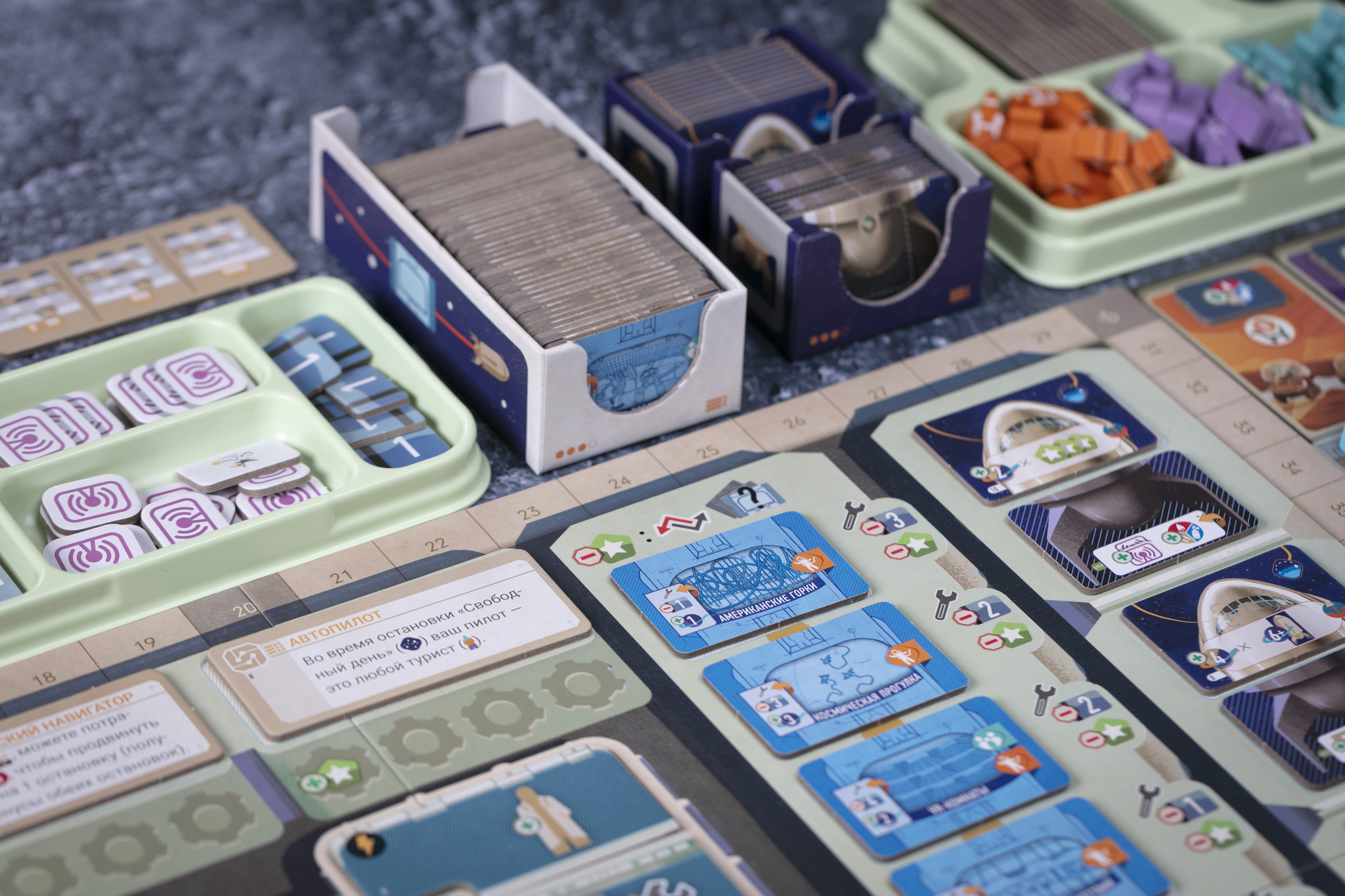 Одно из ключевых преимуществ «Галактического круиза» — его доступность. Да, игра совсем не простая, но очень дружелюбная. Даже если нужное действие уже занято другим игроком, его можно вытолкнуть, не блокируя развитие соперника: рабочий возвращается владельцу, который за это получает финансирование. И уже упомянутая гибкость — возможность дотягиваться сразу до разных ячеек действий. Это делает игровой процесс приятнее — вы не чувствуете себя запертым, — но одновременно открывает возможности для придумывания сложных комбинаций.