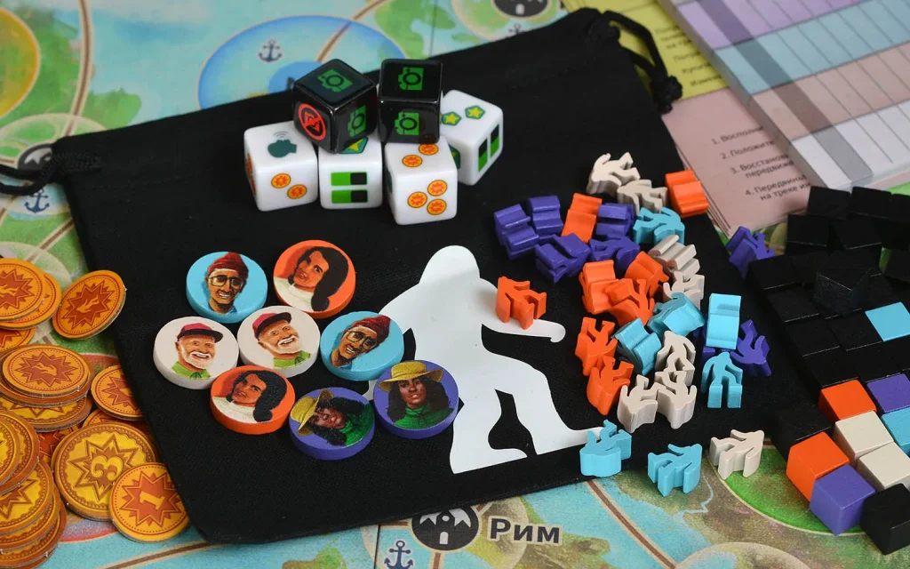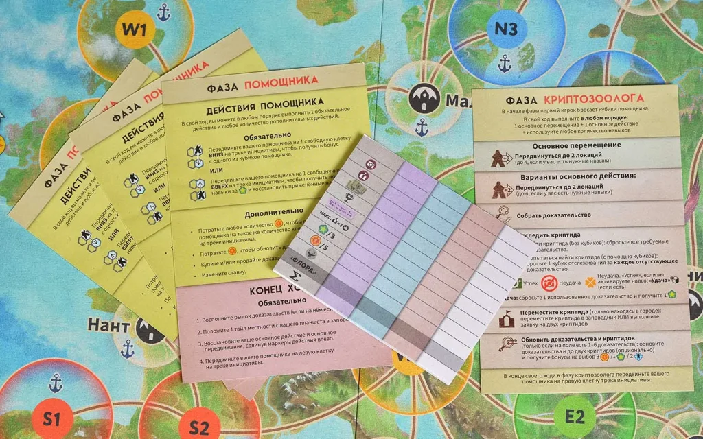 Во фазе помощника акцент смещается с поля на стратегическое развитие. Вы передвигаете помощника по специальному треку инициативы, получая бонусы с кубиков помощника и открывая новые навыки вашего учёного за накопленный опыт. Монеты позволяют выполнять дополнительные действия: менять ставки на криптидов, покупать недостающие доказательства или «перезаряжать» уже использованные навыки. Именно грамотное сочетание полевой работы и апгрейдов помощника помогает выжать максимум из каждого раунда.