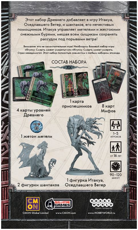 В бескрайних снегах Арктики пробуждается древний ужас. Его дыхание — это вьюга, сметающая всё на пути. Его слуги — шантаки, рождённые из ледяного вихря. Его культисты не знают пощады. Ваша команда сыщиков — последний барьер между Итакуа и гибелью мира.