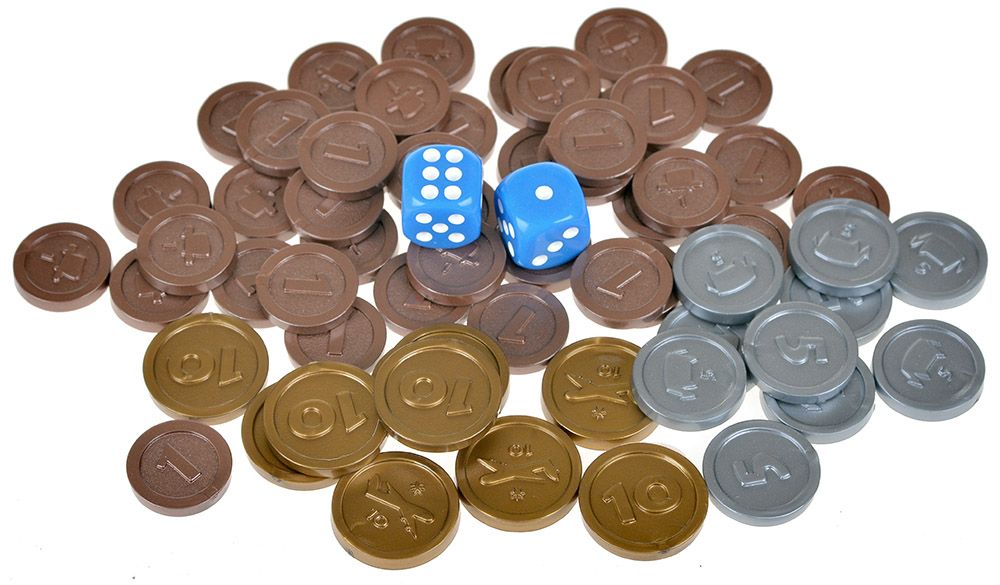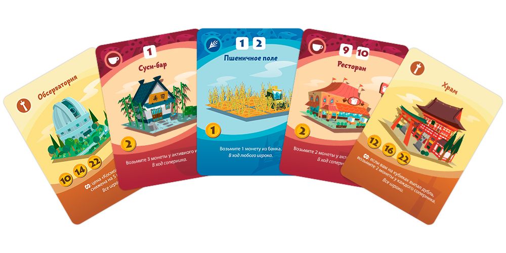 - Каждый игрок получает 5 монет и пустое поле для города