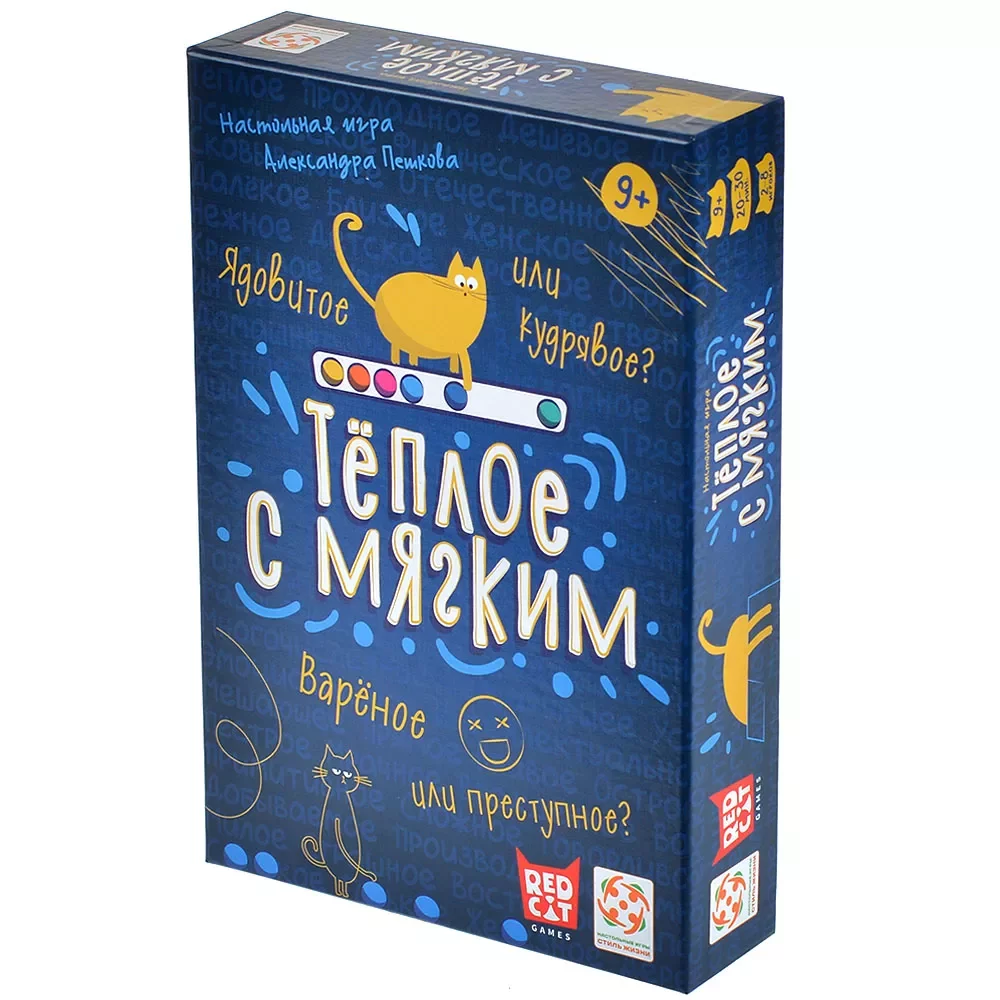 Компактный по правилам, но содержательный по ощущениям, «Тёплое с мягким» отлично работает как игра для разогрева перед более сложными настолками или как основное развлечение на вечеринки. 20–30 минут на партию, минимум подготовки (разложить поле для голосования, раздать жетоны и карты) и практически бесконечное число возможных сочетаний слов и шкал делают его удобным выбором для любых компаний 9+