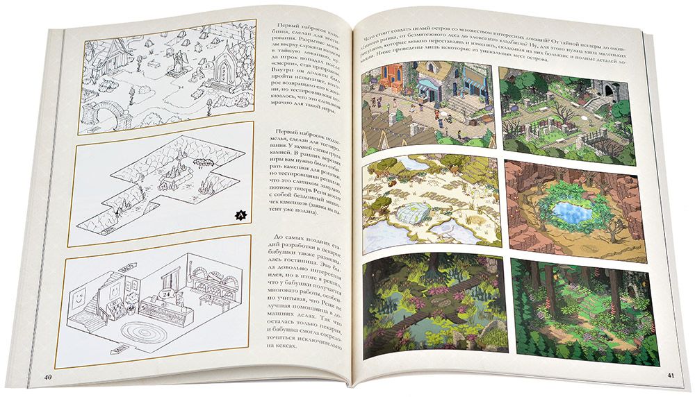 Содержание богато: путешествуйте по локациям — деревушке, руинам, лесам — с описаниями и рисунками. Читайте легенды о древних чарах, биографии ведьм прошлого, которые вдохновили сюжет Рени. Огромное количество иллюстраций, эскизов и карт делает книгу визуальным путешествием, раскрывая секреты острова. Остров жаждет поделиться — готовы узнать всё?
