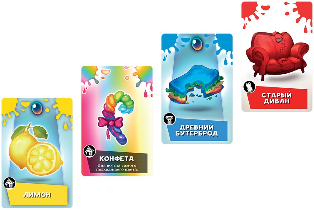 Каждая партия делится на уровни‑главы. В начале главы приложение показывает нового монстрика с определённым цветом, а игроки получают на руки набор карт‑угощений – мороженое, фрукты, игрушки и другие предметы разных цветов и оттенков. Игроки обсуждают, какие карты лучше сыграть, в каком порядке и чем можно «подкорректировать» общий цвет, но при этом нельзя раскрывать карты друг другу – только описывать словами их цвет и свойства.​