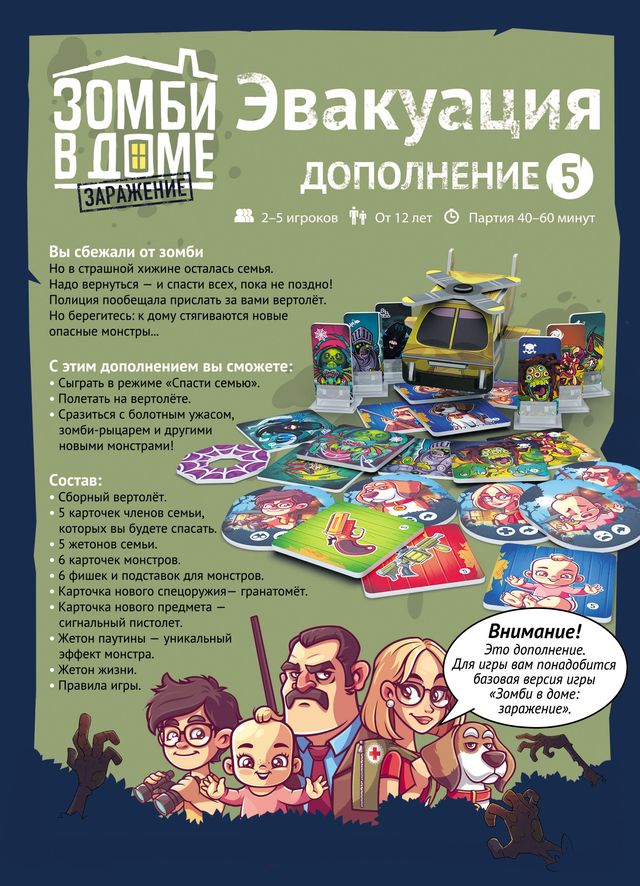 Важно помнить, что «Зомби в доме: Заражение. Эвакуация» — это именно дополнение, а не самостоятельная игра. Для использования всех его возможностей нужна базовая версия «Зомби в доме: Заражение». Новые компоненты органично интегрируются в знакомые правила и сценарии, превращая очередную вылазку в дом в напряжённую спасательную операцию с отчётливым ощущением тикающего времени. Для поклонников серии это отличный способ вернуть игру на стол и испытать её в новом, более драматичном режиме.